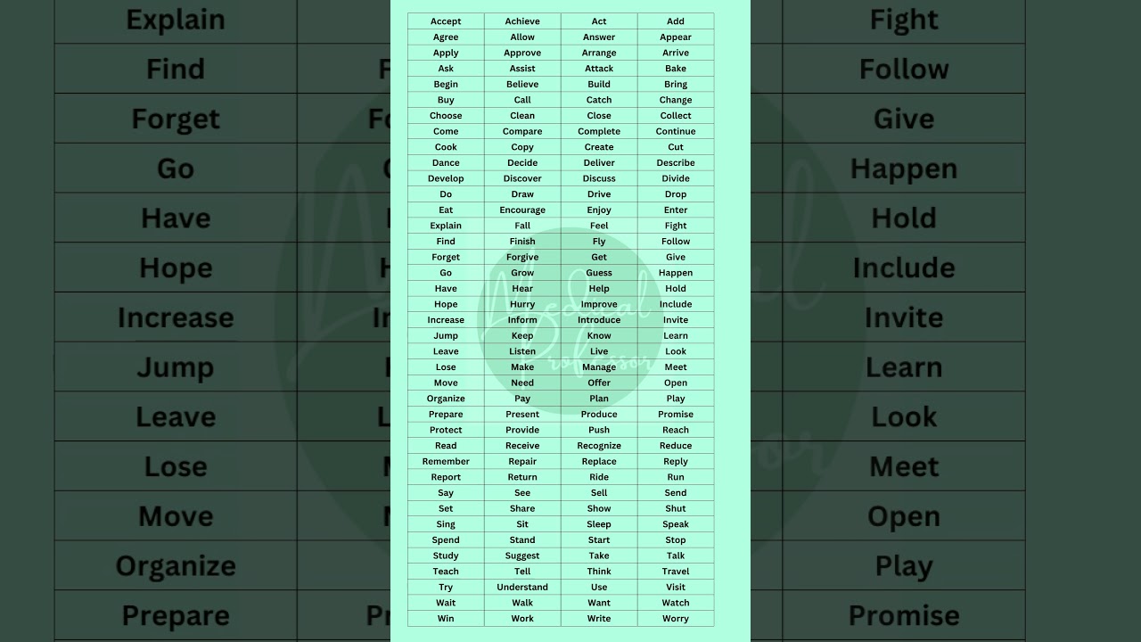 50 Most Common Verbs In English Pdf Most common verbs list. Struggling with irregular verbs? get the full list of 200 verbs with past tense forms, pattern groups & a free downloadable pdf. List of regular verbs scribbr list of regular verbs. A comprehensive list of 200 commonly used verbs in english language to enhance your vocabulary. also includes faqs about verbs and their usage. This verb list includes the verbs in connect student’s book 3. verbs are listed with the lesson and page on which they first appear. 200 most common verbs list in english. here is most common english verbs;.